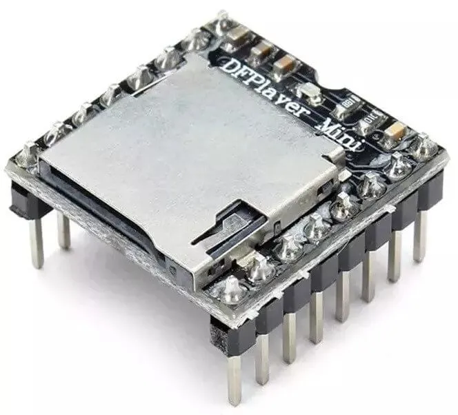 The dfplayer (datasheet), component allows you to play sound and music stored in an SD card or USB flash drive.